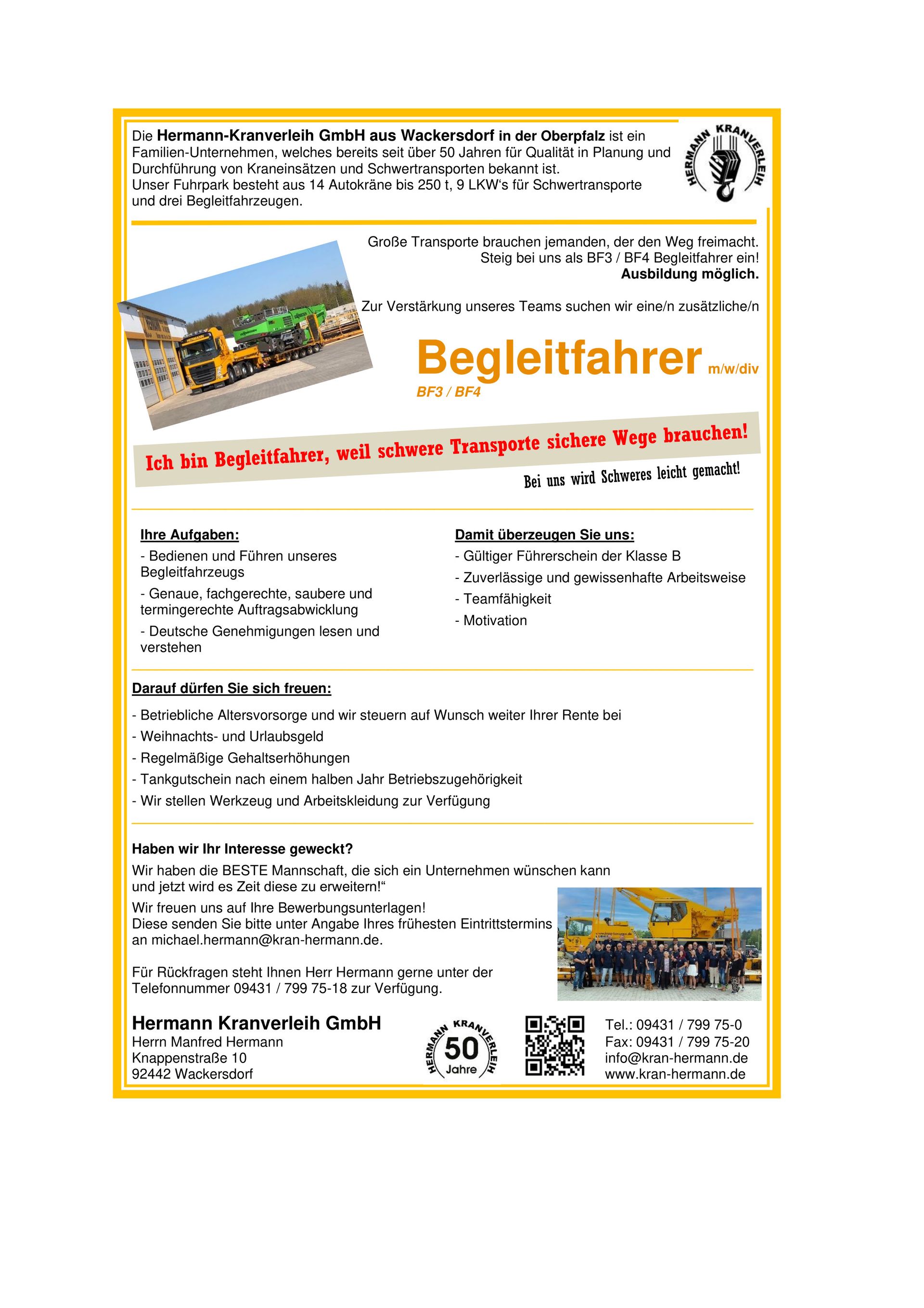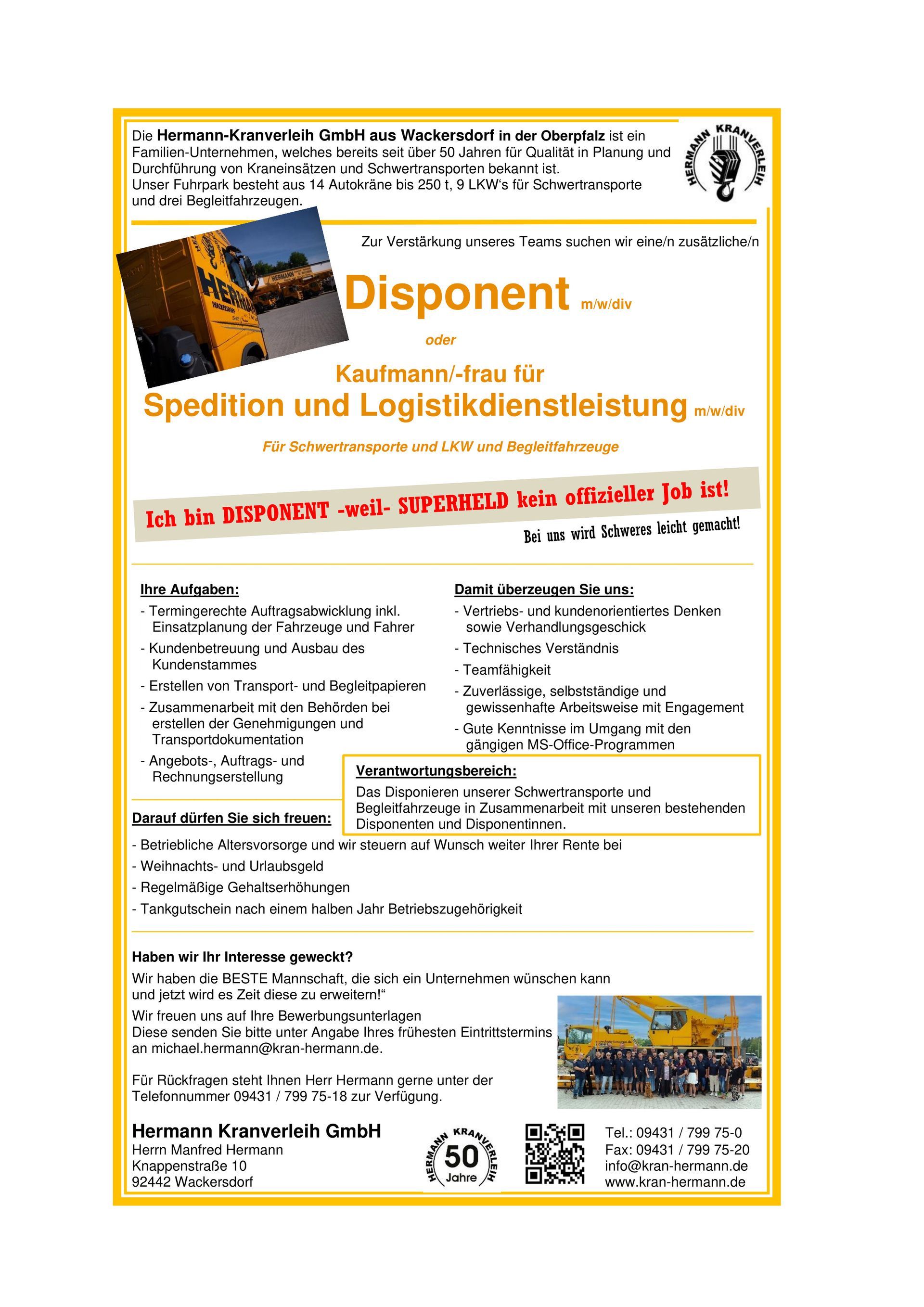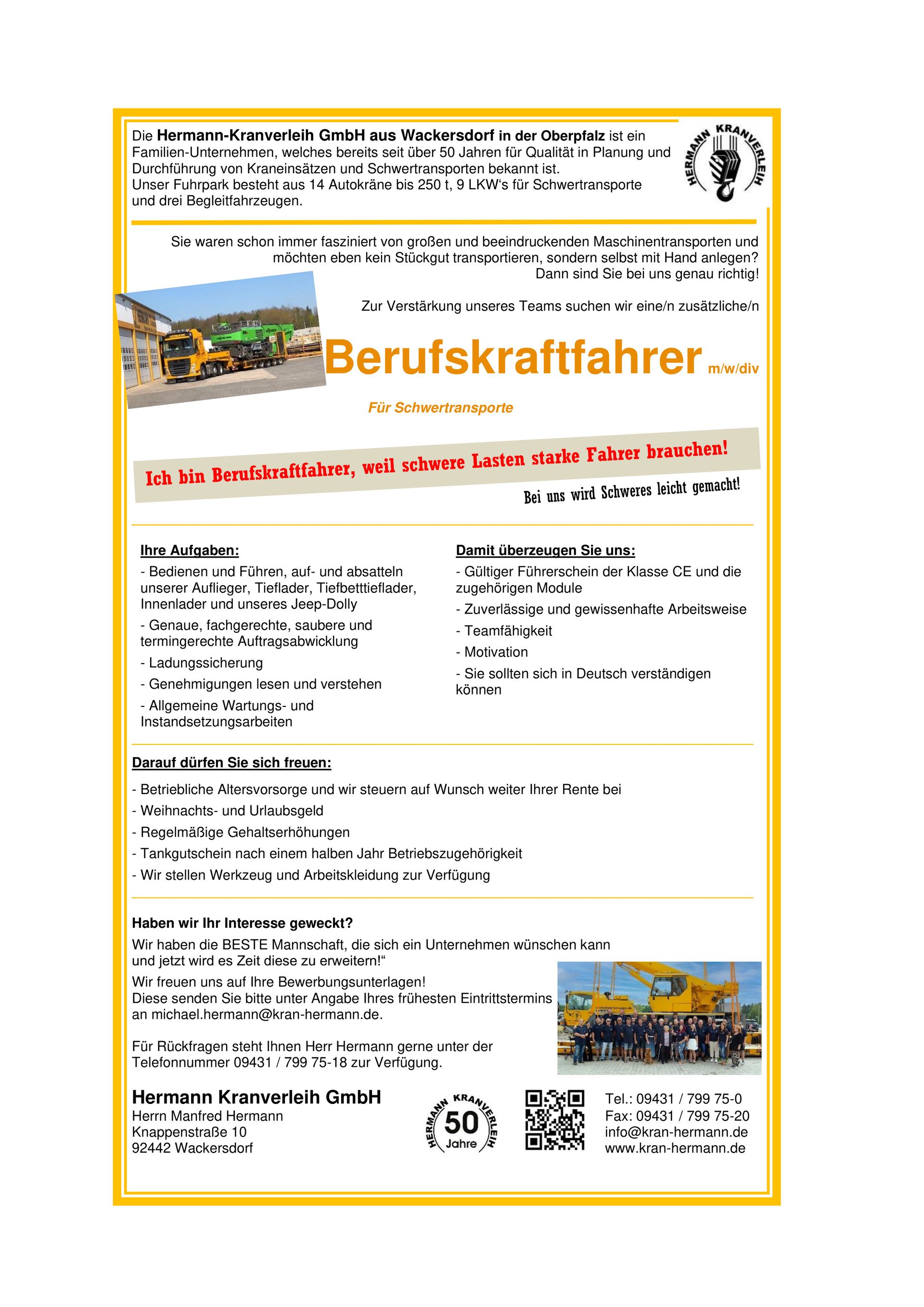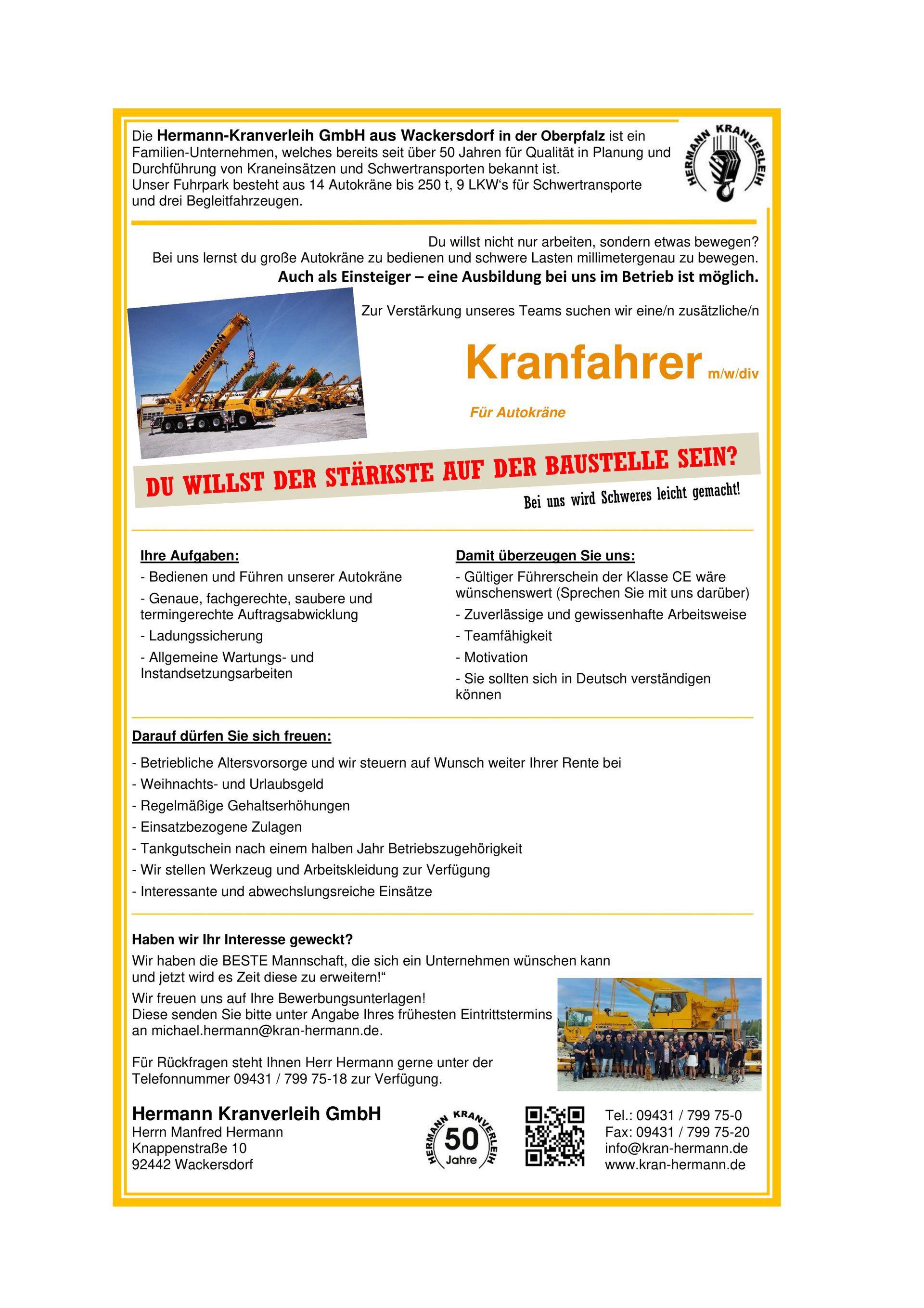 Er gründete am 1. September1990 die heutige Firma Hermann Kranverleih GmbH.
