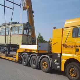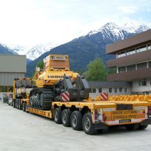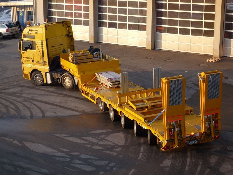 Auch wenn es zahlreiche Typen von Tiefladern gibt, haben alle gemeinsam, dass sie eine sehr tiefe Ladefläche besitzen. Die Länge variiert je nach Fahrzeug-Ausführung. Bei all unseren Tiefladern kann die Ladefläche durch Teleskopieren verlängert werden. Die niedrige Ladefläche sorgt dafür, dass ein hohes Ladegut transportiert werden kann. Damit können wir besonders hohe Maschine oder sperriges Transportgut problemlos transportieren.