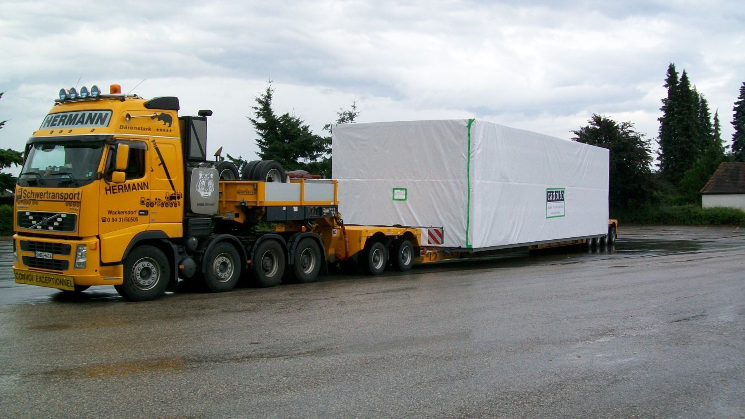 - Lkw mit Tieflader mit 4 + 4 = 8 Achsen mit 72 to Gesamtgewicht