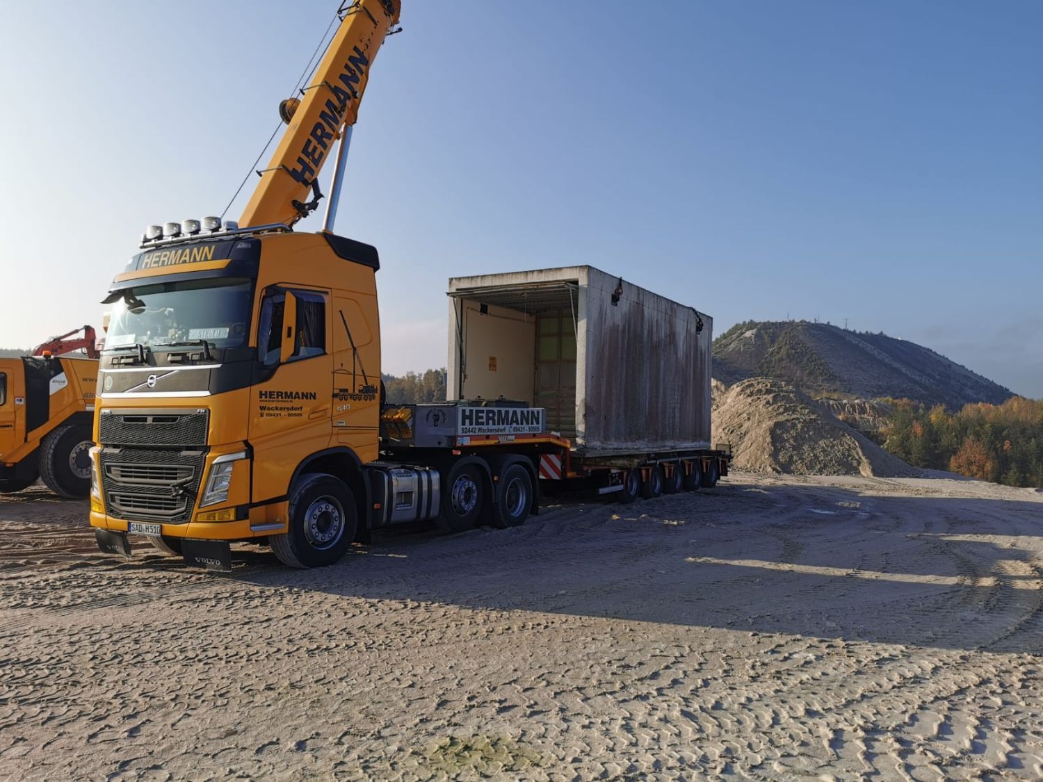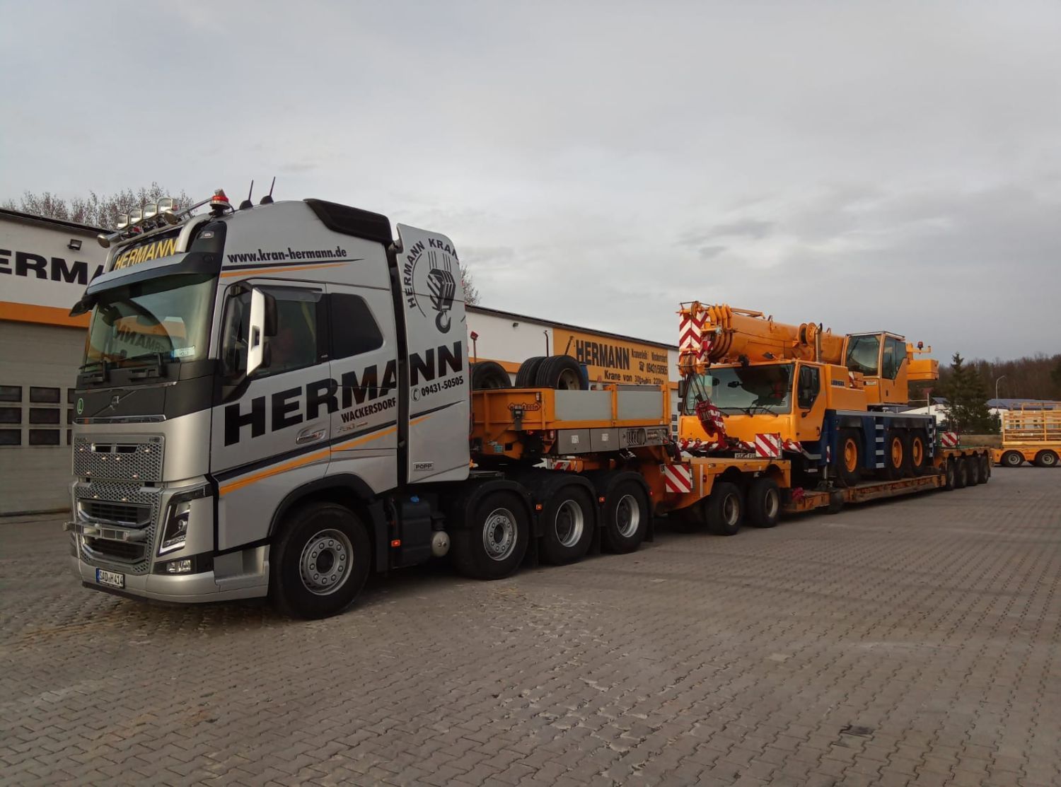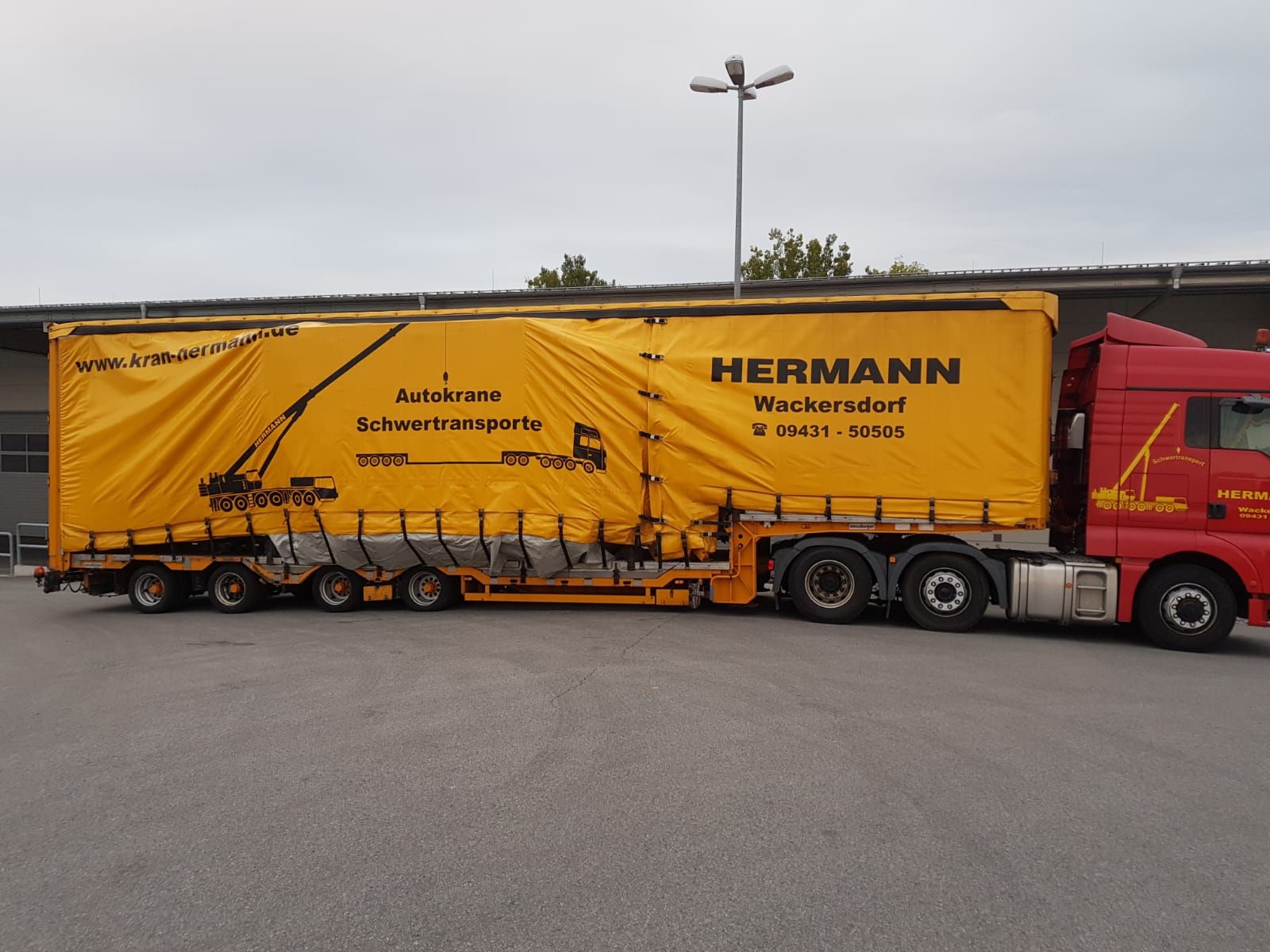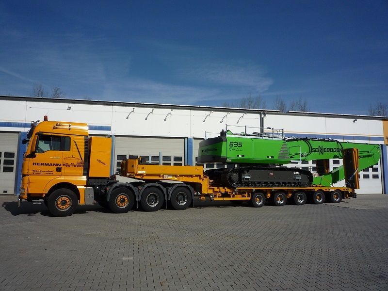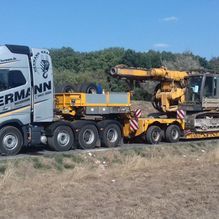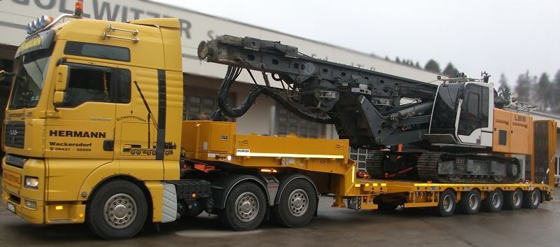 Bei Ihrer Hermann Kranverleih GmbH erhalten Sie Tieflader in zahlreichen Größen und Ausführungen. Ob Sie einen Transport von schweren Baumaschinen oder Industriemaschinen planen, Baumaterial, wie Betonfertigteile, oder Arbeitsbühnen transportieren möchten – wir sind Ihr Spezialist für Spezial- und Schwer-Transporte.