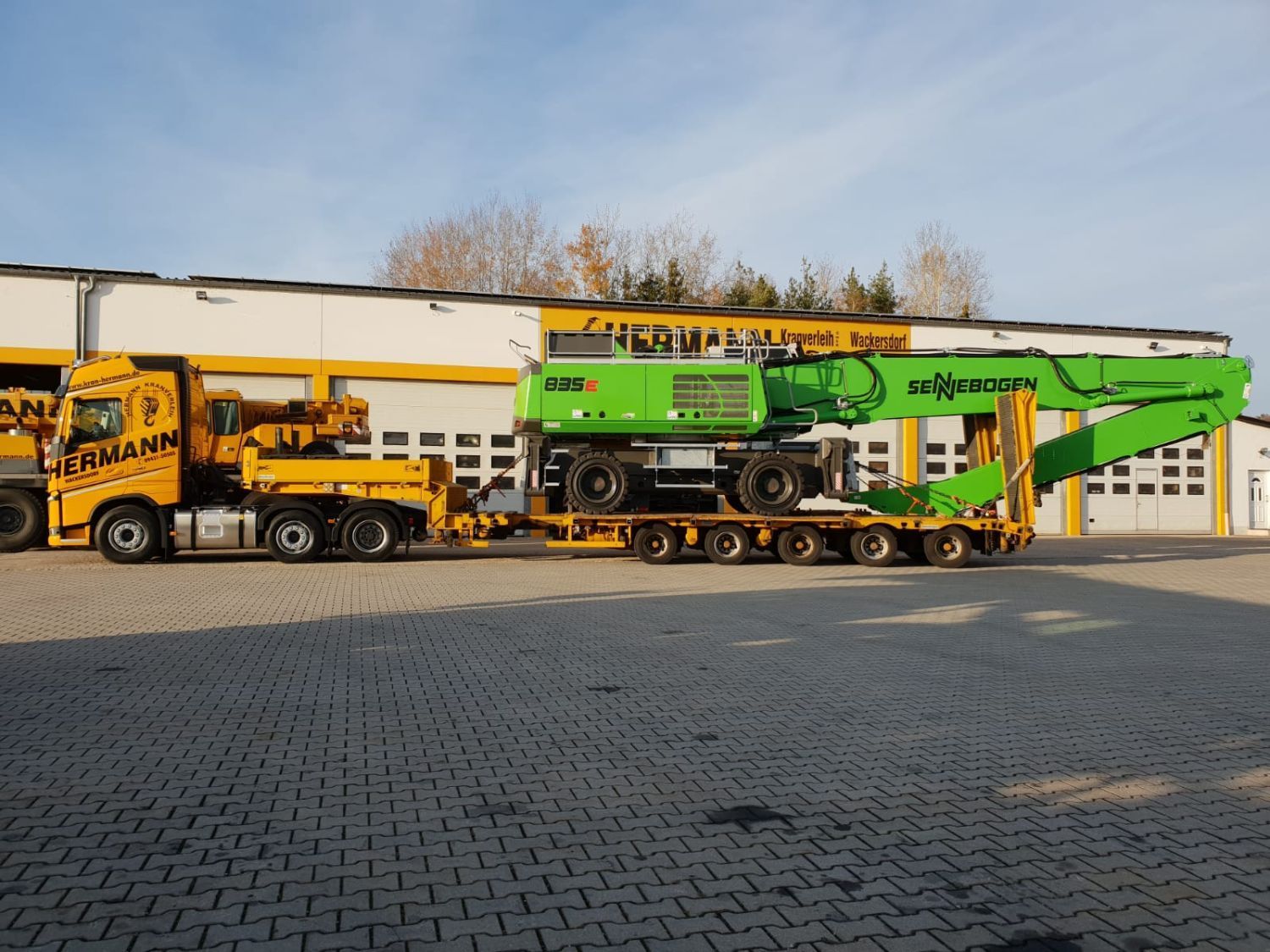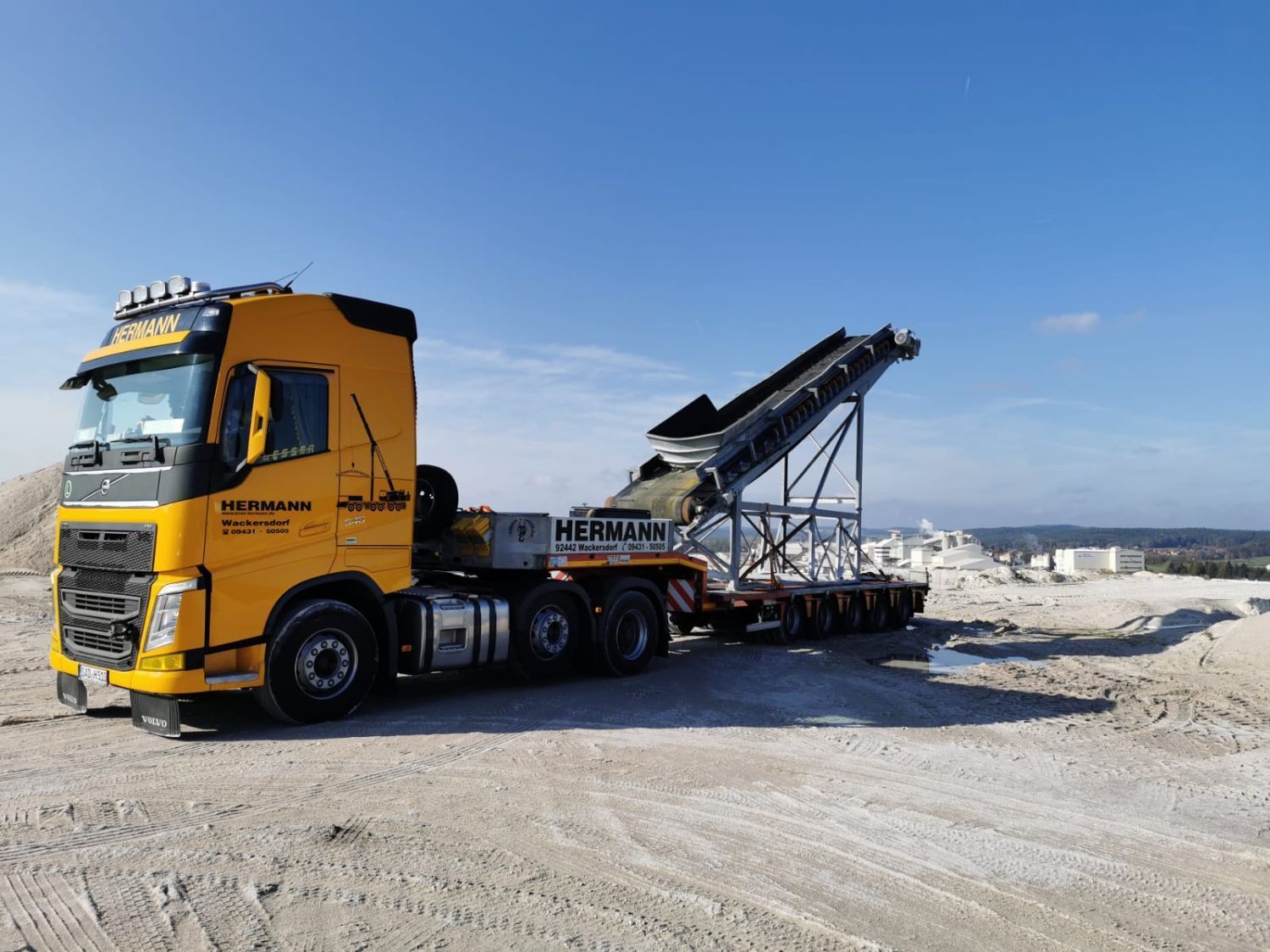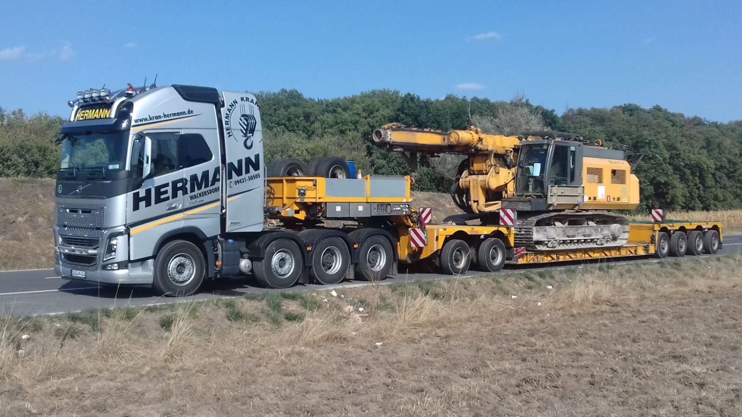 Bei Ihrer Hermann Kranverleih GmbH erhalten Sie Tieflader in zahlreichen Größen und Ausführungen. Ob Sie einen Transport von schweren Baumaschinen oder Industriemaschinen planen, Baumaterial, wie Betonfertigteile, oder Arbeitsbühnen transportieren möchten – wir sind Ihr Spezialist für Spezial- und Schwer-Transporte.