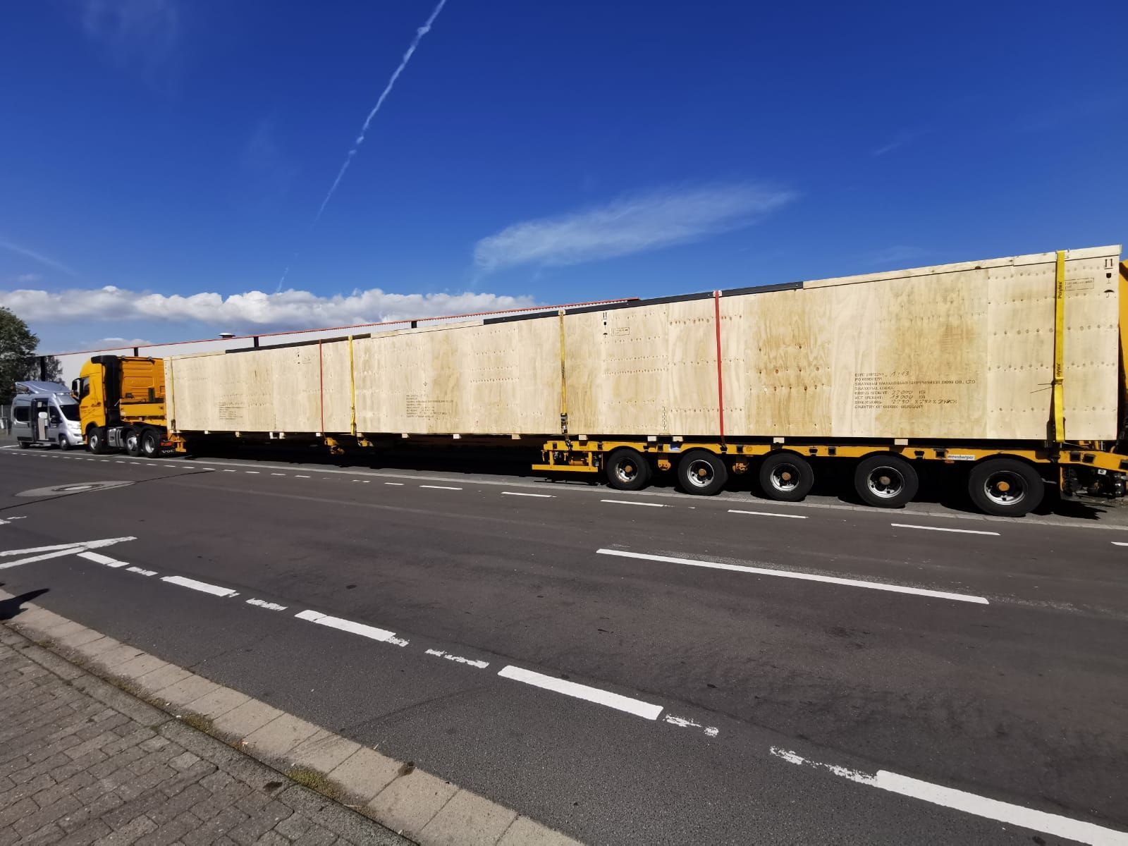 - Lkw mit Tieflader mit 4 + 5 = 9 Achsen mit 85 to Gesamtgewicht